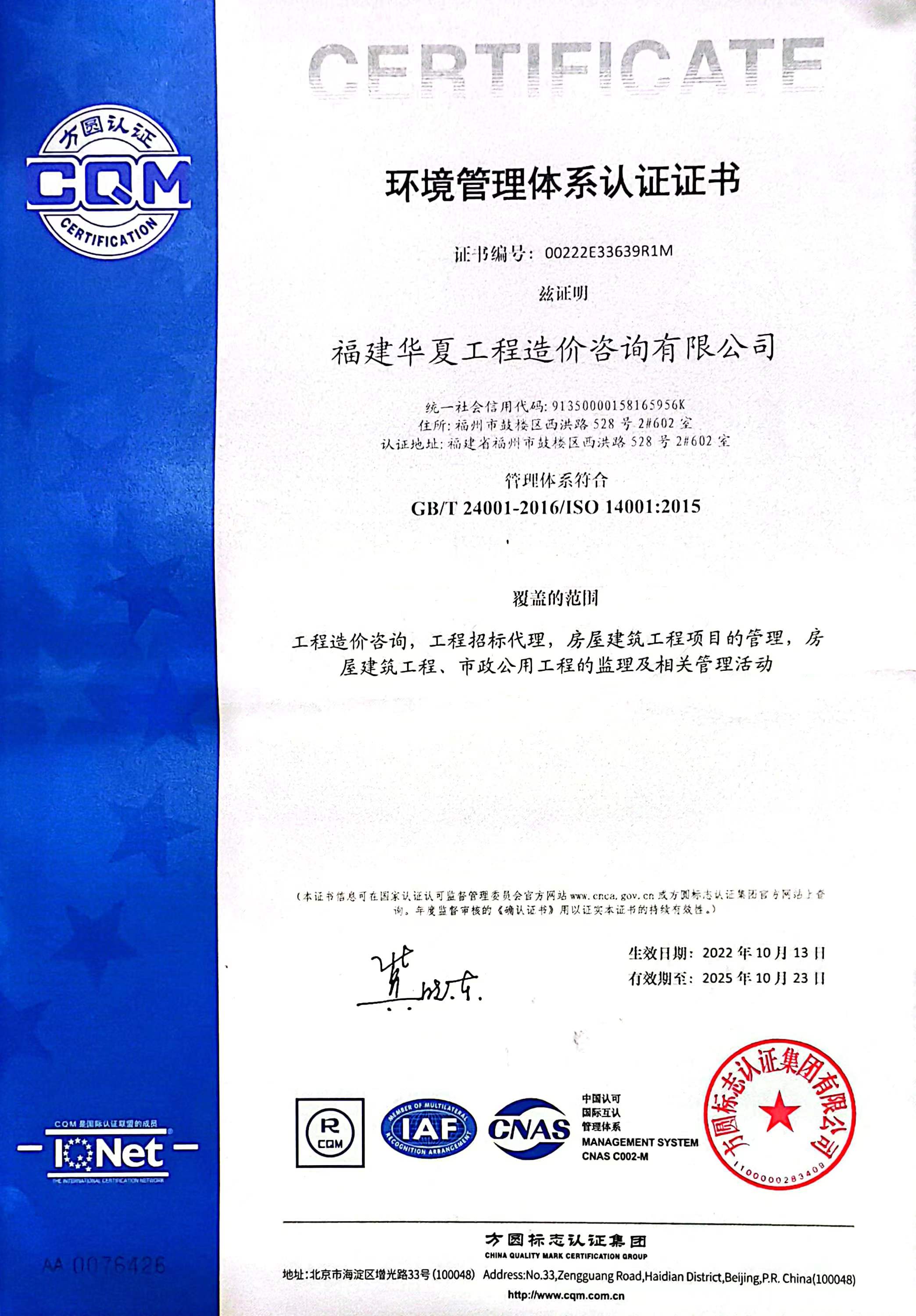 司在行业内率先通过了 ISO 质量、环境、职业健康安全管理 三系认证,建立了完善的质量管控制度。