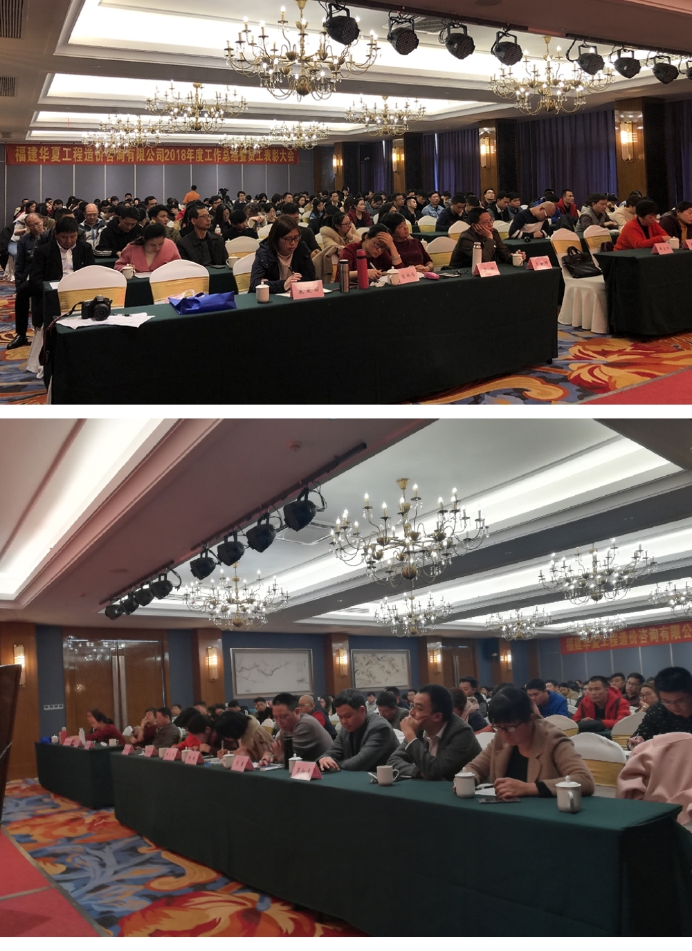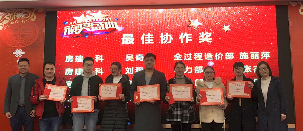 总经理做2018年度工作总结 副总经理做2018年度工作总结 总工做2018年度工作总结 大会第二个环节是表彰2018年公司涌现出来的优秀团体和个人。为鼓励先进、激励后进,公司每年都会对本年度内表现突出的“团队及个人”予以表彰。此次,共1个优秀团队和25位先进分子受到表彰。 黄总为优秀团队——电力部颁奖 总工王小玲为“业主好评奖”的获得者颁奖 总工袁爱丽、李知冲为“最佳协作奖”的获得者颁奖