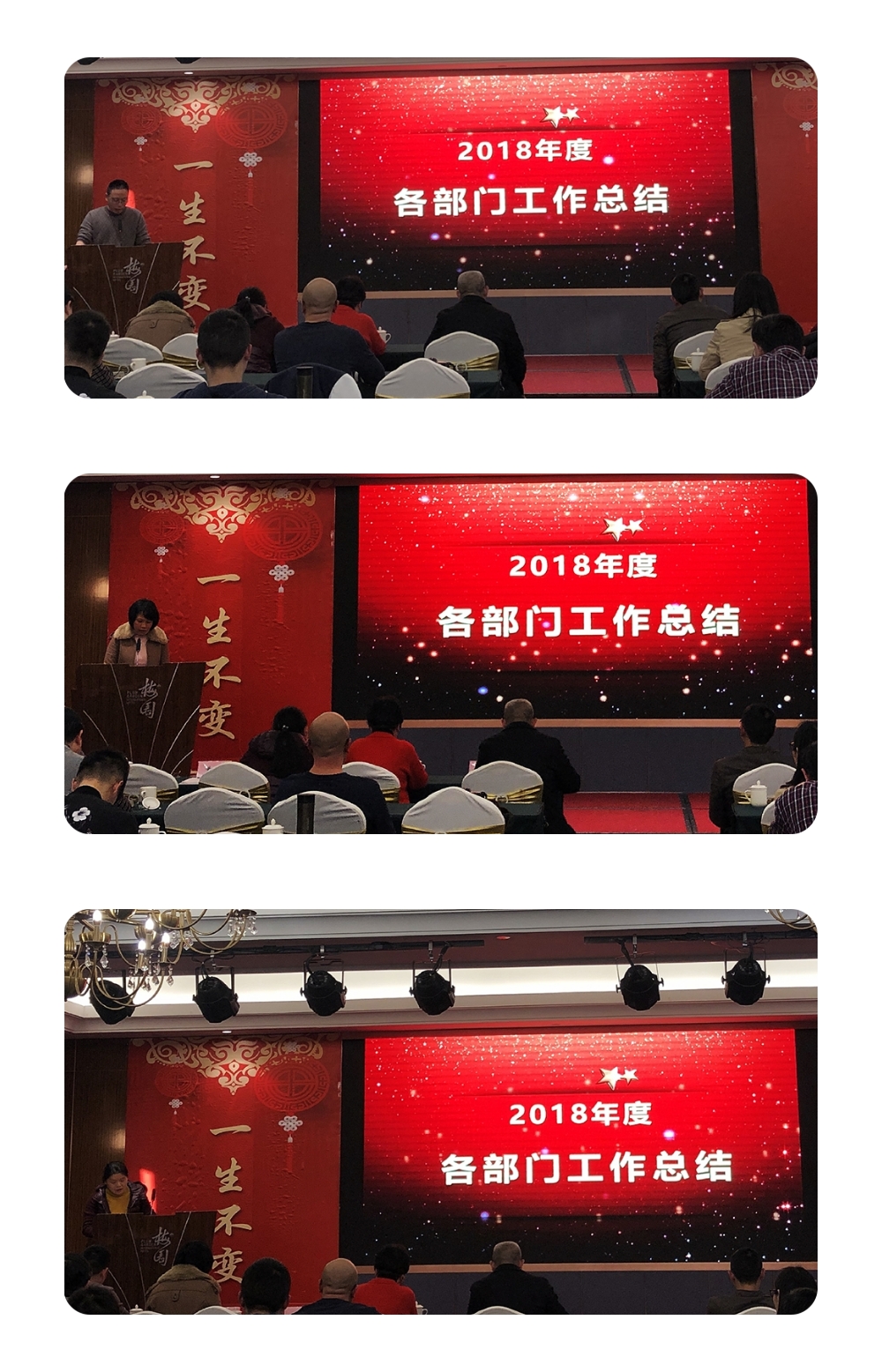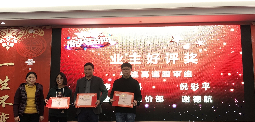 总经理做2018年度工作总结 副总经理做2018年度工作总结 总工做2018年度工作总结 大会第二个环节是表彰2018年公司涌现出来的优秀团体和个人。为鼓励先进、激励后进,公司每年都会对本年度内表现突出的“团队及个人”予以表彰。此次,共1个优秀团队和25位先进分子受到表彰。 黄总为优秀团队——电力部颁奖 总工王小玲为“业主好评奖”的获得者颁奖 总工袁爱丽、李知冲为“最佳协作奖”的获得者颁奖